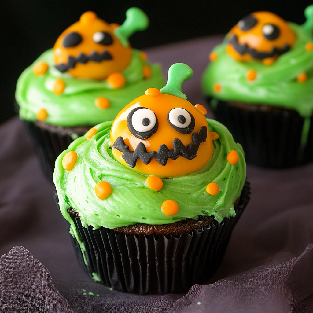 Every bite of these cupcakes is packed with flavor and festive cheer. The bright green vanilla buttercream on top is simply irresistible, making these cupcakes a highlight of any celebration. Get ready to impress your friends and family with this deliciously spooky dessert!