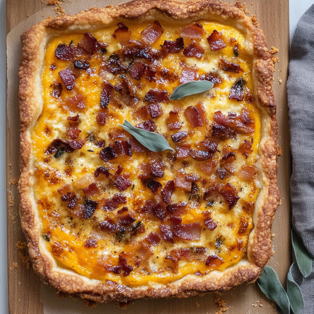 Pumpkin, Ricotta & Caramelized Onion Tart with Bacon and Sage