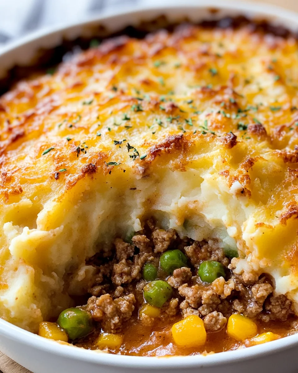 Indulge in the heartwarming flavors of Shepherd’s Pie with Ground Turkey, a delightful twist on the classic comfort dish. This recipe features lean ground turkey sautéed with savory herbs and garlic, combined with a colorful medley of mixed vegetables. Topped with creamy mashed potatoes and baked to golden perfection, this dish is not only nutritious but also easy to prepare, making it perfect for busy weeknights or special family gatherings. Experience the joy of homemade comfort food that warms both the stomach and soul.