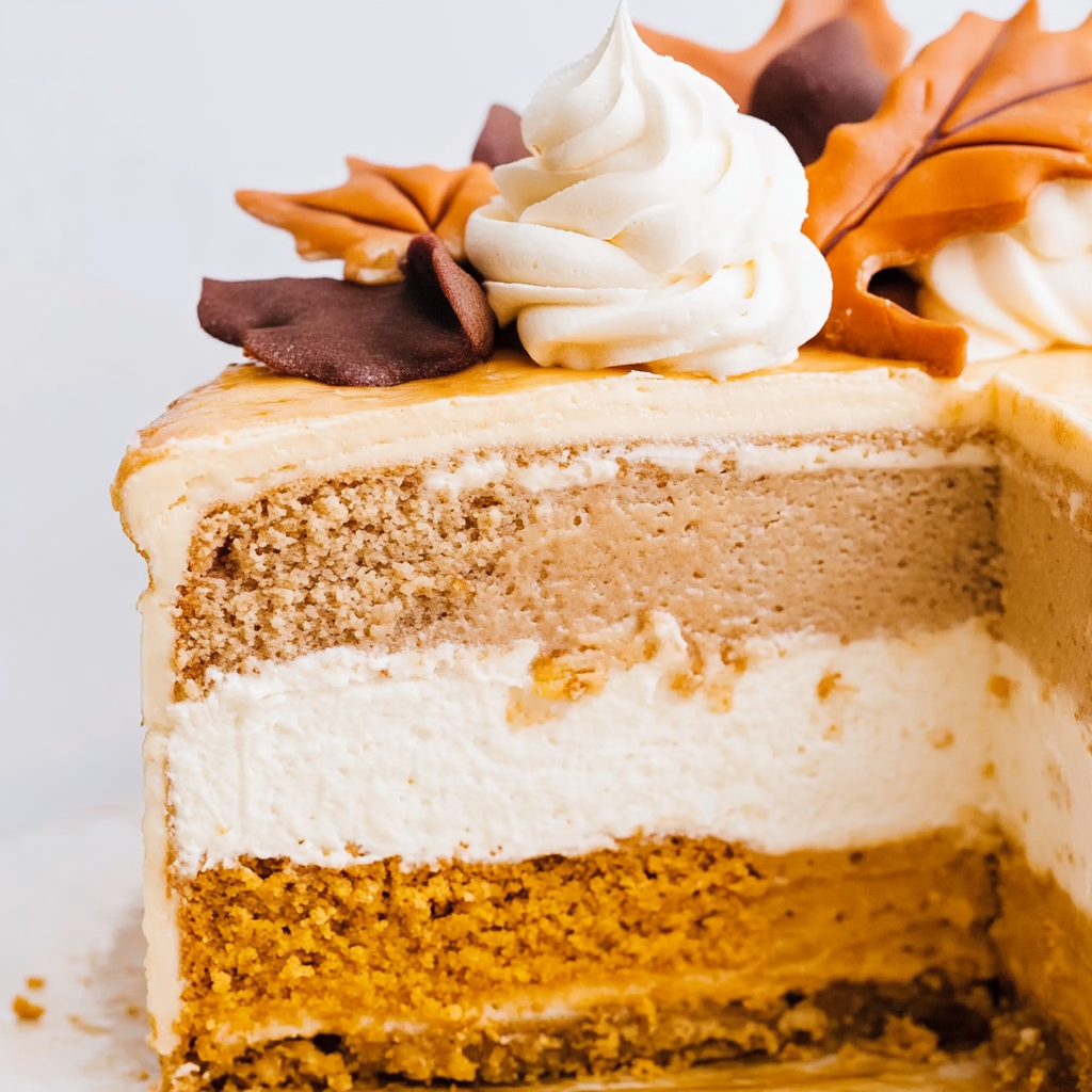 • Chill the Cheesecake Layer: After baking, let the cheesecake cool completely in the refrigerator before stacking it with the pumpkin pie and spice cake. This will help it hold its shape better.